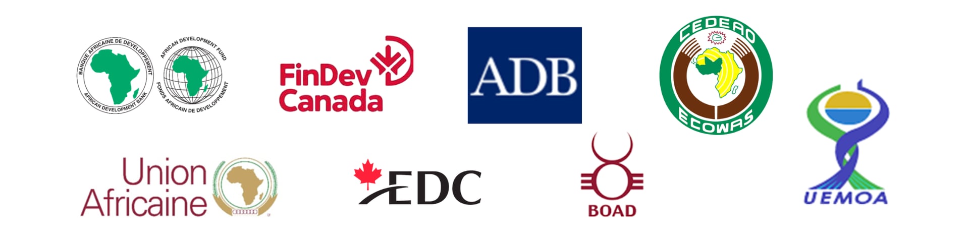 Notre action repose sur des partenariats financiers robustes, diversifiés et crédibles. Ces institutions sont des acteurs-clés de l’investissement, du développement durable et de l’intégration régionale. Nous collaborons ou visons une collaboration structurante avec :